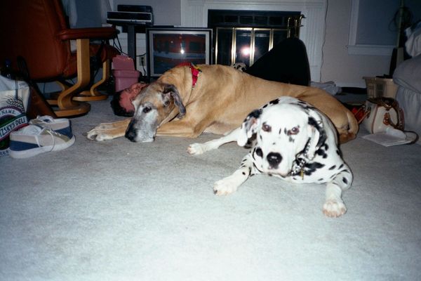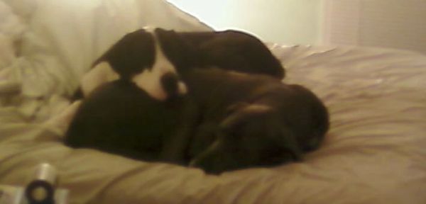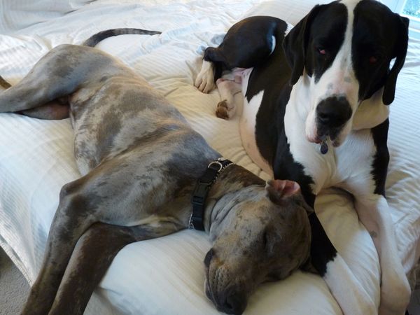 Zeus and Bentley chilling in the bedroom. If only they could have gotten along like this all the time.