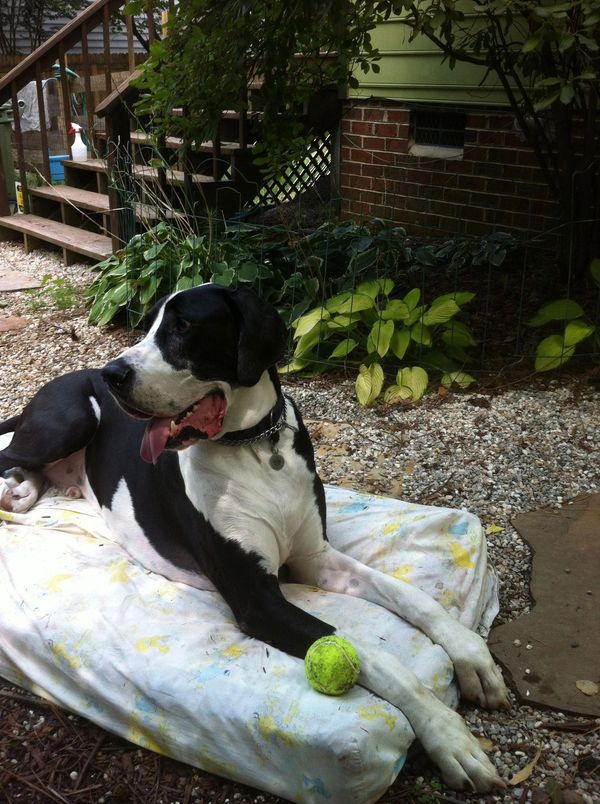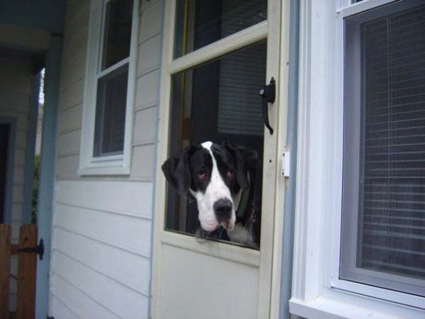 Zeus asked Stone to knock him a hole in the door so he could see where his mommy went.