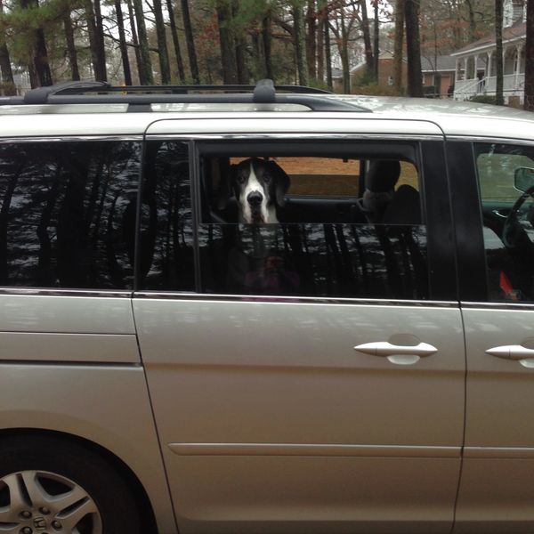 Zeus going for a ride, courtesy of Maxy's taxi.